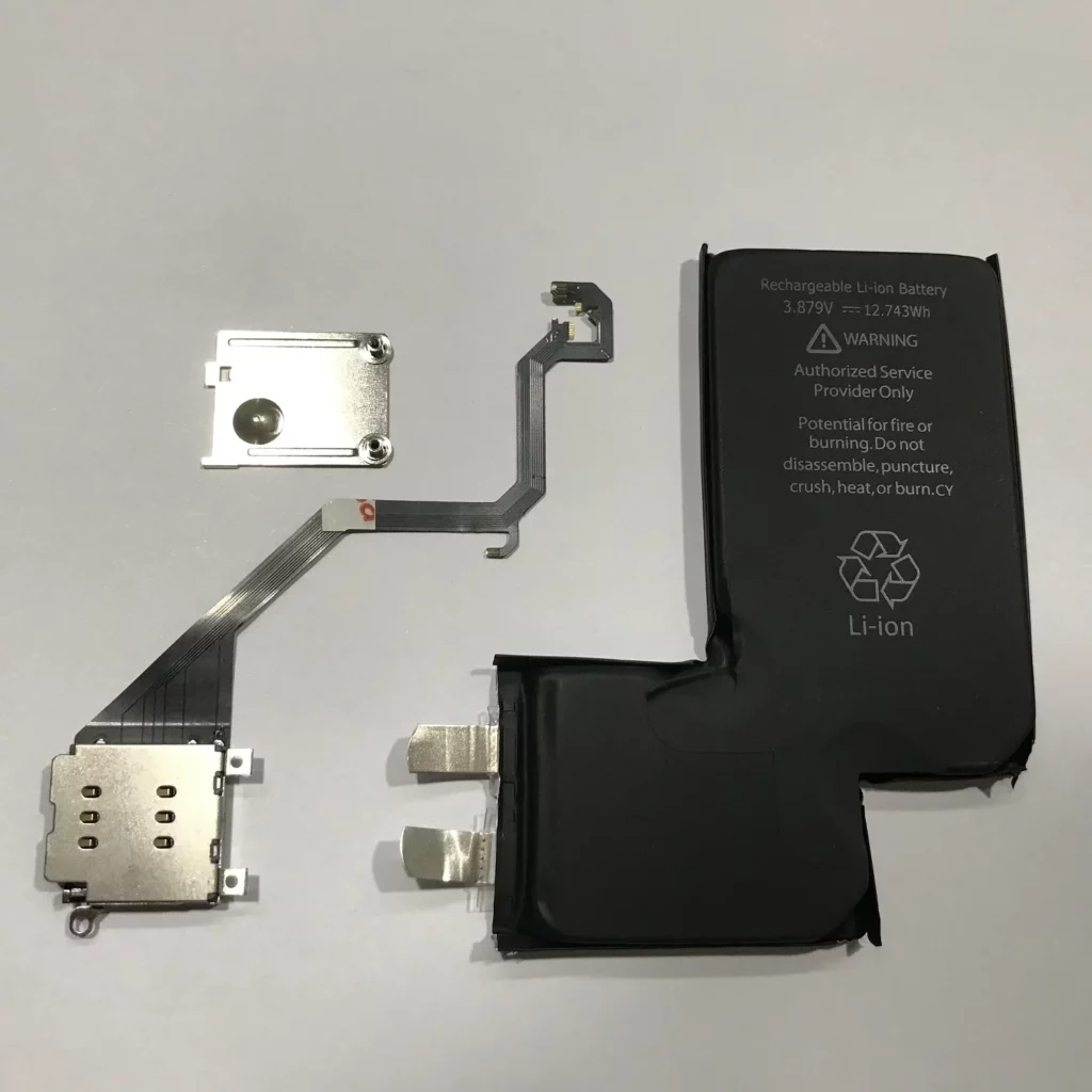 Mais la contrainte la plus problématique concerne la batterie. L’iPhone ayant été pensé dès sa conception pour fonctionner sans tiroir SIM, aucun espace interne n’est prévu pour loger ce composant supplémentaire. Pour contourner cette limite, les moddeurs remplacent alors la batterie d’origine par une version modifiée, parfois redessinée ou même découpée, afin qu’elle laisse suffisamment de place pour le logement SIM et son circuit. Ces batteries custom, bien éloignées des standards de sécurité d’Apple, sont souvent dépourvues de certification et n’offrent pas la même fiabilité qu’un composant officiel.